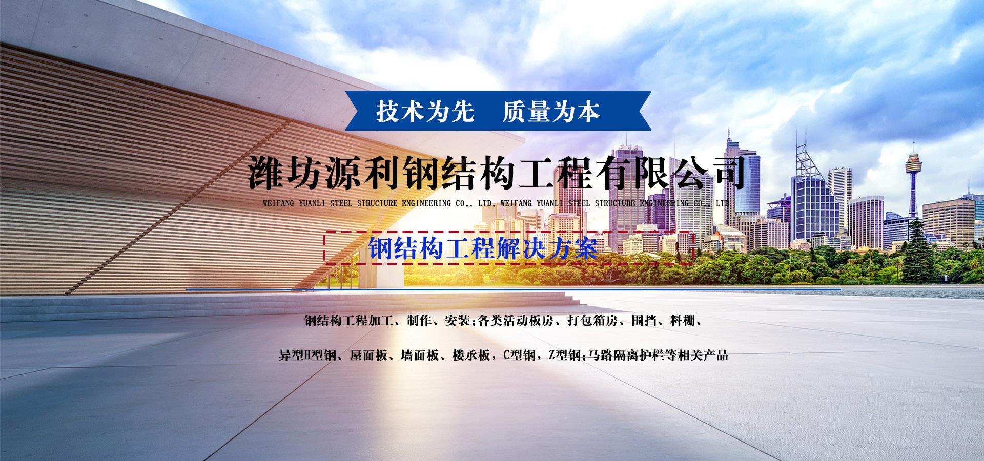 濰坊源利鋼結(jié)構(gòu)工程有限公司成立于2015年,是一家從事活動(dòng)房屋,鋼結(jié)構(gòu)設(shè)計(jì)、制作、安裝為一體的公司。公司坐落于風(fēng)景秀麗的藍(lán)寶石之鄉(xiāng)昌樂開發(fā)區(qū),占地約60畝,年加工生產(chǎn)能力到40萬平米,現(xiàn)已發(fā)展成本地較大的鋼結(jié)構(gòu)企業(yè),同時(shí)也已跨入集成房屋研發(fā)、推廣企業(yè)行列。公司配備了全套的箱房流水線生產(chǎn)設(shè)備,包含了全自動(dòng)冷彎成型設(shè)備、流水自動(dòng)涂裝線、沖壓型材生產(chǎn)線以及全套的配套設(shè)備,標(biāo)準(zhǔn)化、模具化生產(chǎn)加工,年生產(chǎn)5000套打包箱,產(chǎn)品保障。 公司主要產(chǎn)品有:鋼結(jié)構(gòu)工程加工、制作、安裝;各類活動(dòng)板房、打包箱房、裝配式箱房、折疊箱房、圍擋、料棚、異型H型鋼、屋面板、墻面板、樓承板,C型鋼,Z型鋼;馬路隔離護(hù)欄等相關(guān)產(chǎn)品。